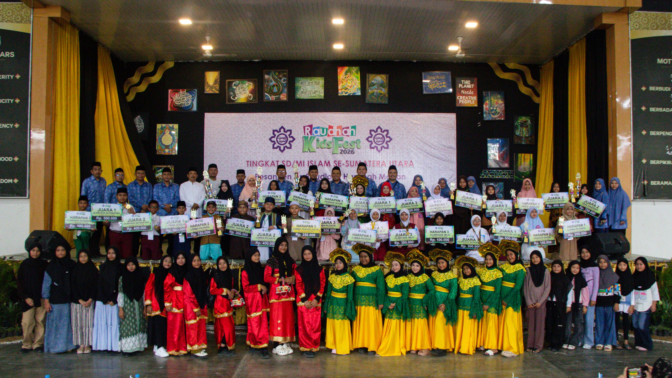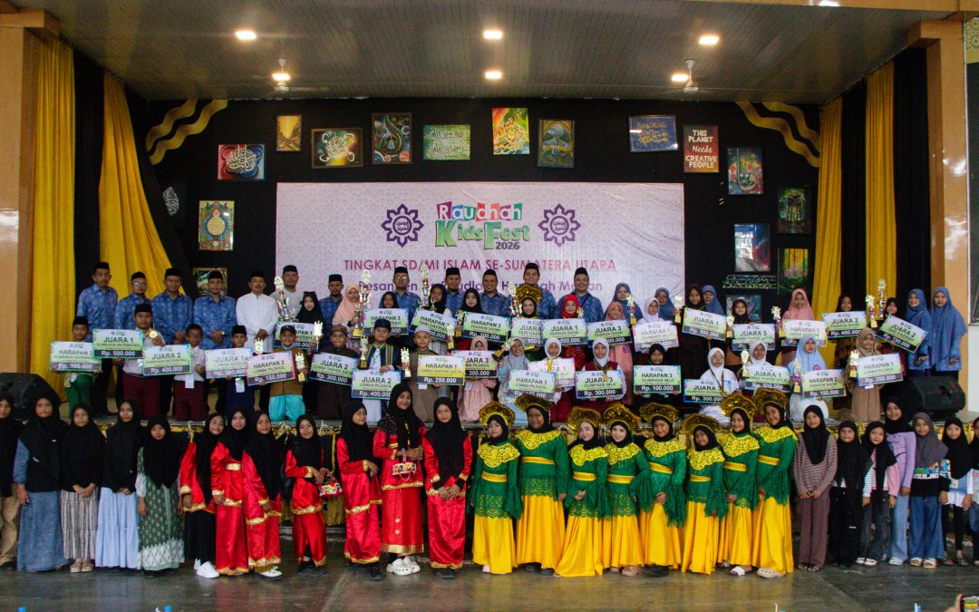 RAUDHAH — Pesantren Ar-Raudlatul Hasanah kembali menyelenggarakan ajang kompetisi pelajar bertajuk Raudhah Kids Fest 2026 tingkat MI/SD dan MTs/SMP se-Sumatera Utara. Penyelenggaraan RKF 2026 ini bertujuan untuk mengembangkan kreativitas serta potensi peserta didik, menumbuhkan rasa percaya diri dan sportivitas, serta memperkenalkan lingkungan dan nilai pendidikan di bumi wakaf Pesantren Ar-Raudlatul Hasanah.
