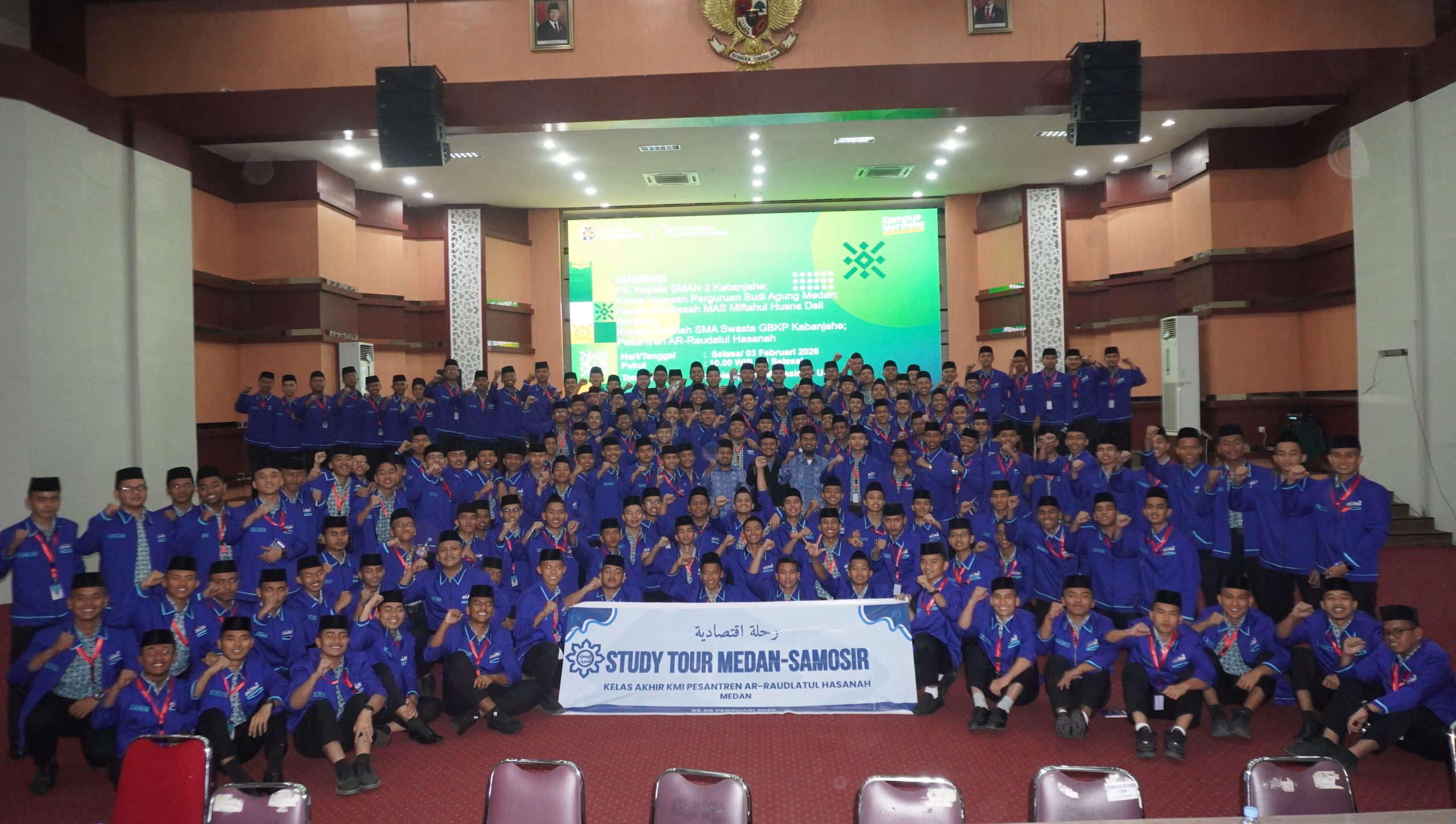 RAUDHAH – Sebanyak 330 santri dan santriwati Akhir Kulliyyatul Mu’allimin Al-Islamiyyah (KMI) Pesantren Ar-Raudlatul Hasanah mengikuti kegiatan Rihlah Tarbawiyyah dan Iqtishadiyyah di Kota Medan. Kegiatan yang berlangsung pada Selasa, 3 Februari 2026 ini diikuti oleh 170 putra dan 160 putri sebagai bagian dari kurikulum pendidikan KMI.